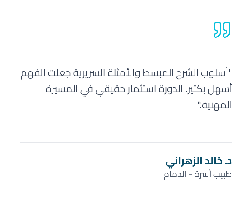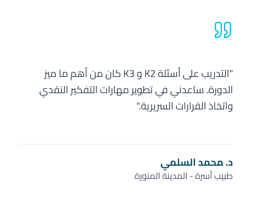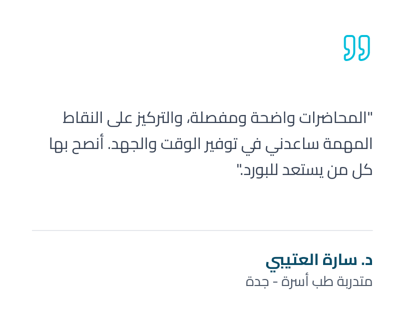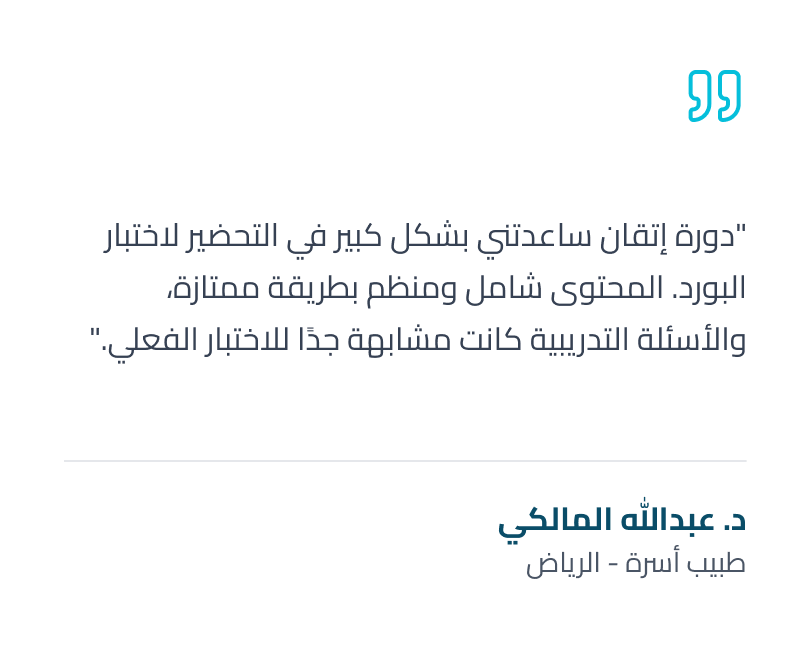 نقدّم برامج تعليمية احترافية مصممة خصيصًا لتلبية احتياجات الأطباء والمتدربين في مجال طب الأسرة، مع تركيز خاص على التحضير لاختبار البورد النهائي المعتمد من الهيئة السعودية للتخصصات الصحية (SCFHS).